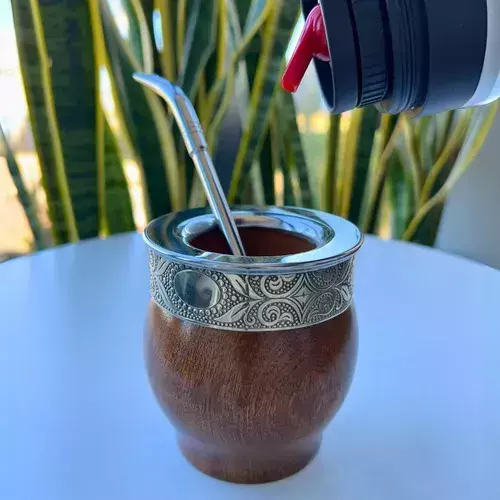 Diseño Rústico y Tradicional: Conserva la esencia del mate argentino con un formato sobrio y funcional.