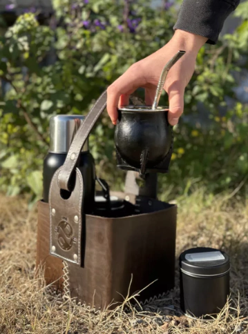 Diseño Espacioso y Funcional: Su amplio interior permite transportar cómodamente tu termo térmico, mate, yerbera y azucarera, mientras que una división interna asegura que todo permanezca organizado y separado.